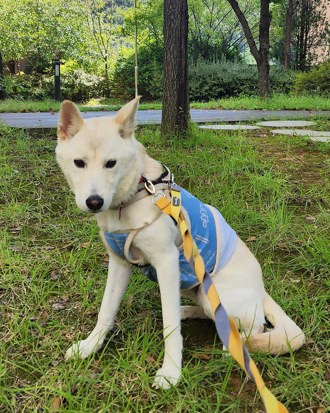 겁이 많다 보니 꼬리가 거의 내려가 있는데 산책할 때만큼은 꼬리를 올리고 살랑살랑 흔들어요. (너무 예쁨!!)