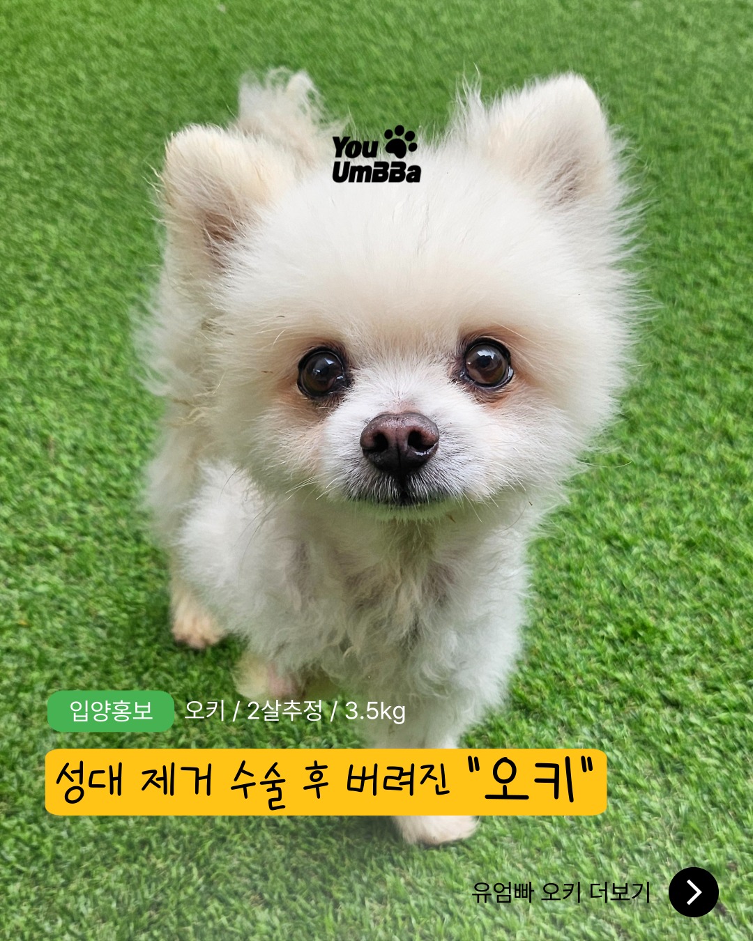 마음이 놓이지 않아 진해보호소에서 두 아이를 더 데려오게 되었고, 그중 한 아이가 오키입니다.