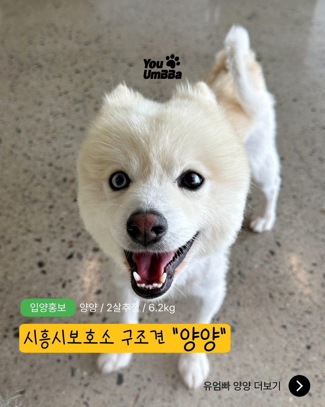 양양이는 시흥시보호소에서 구조되었어요.