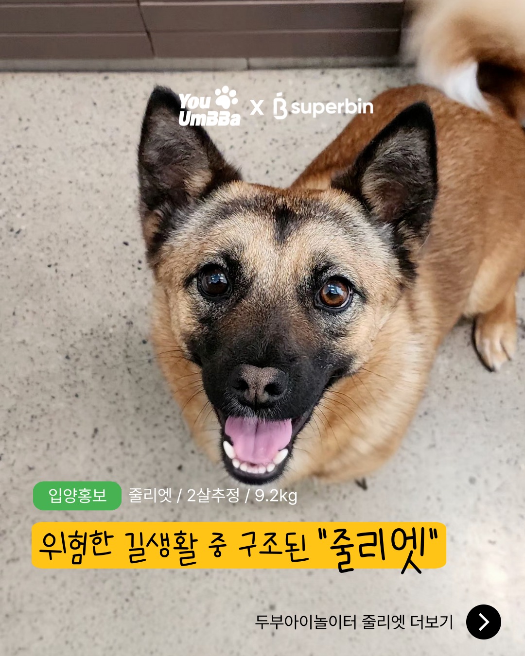 전북 장수군에서 위험한 차도를 넘나들며 길생활을 하던 로미오와 줄리엣은 함께 구조되어 수퍼빈 두부아이놀이터에 입소했어요.