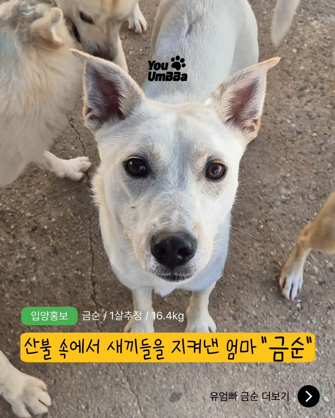 평생 귀하게 살아갈 수 있도록 금순이의 평생 가족이 되어주세요!